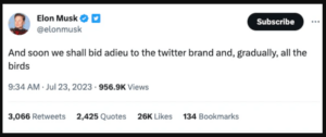 “And shortly we shall bid adieu to the Twitter logo and, steadily, all of the birds,” Musk wrote in a tweet on Sunday morning.